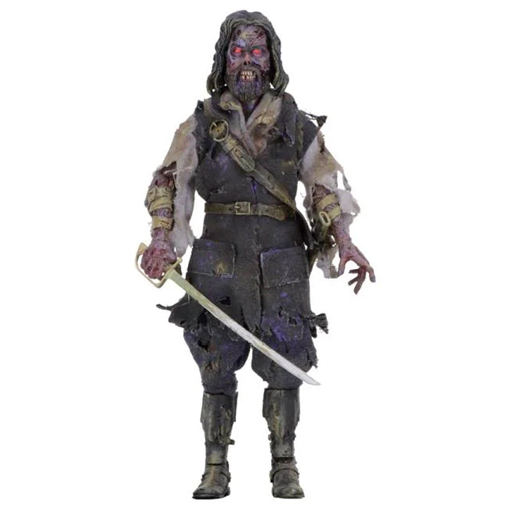 Bolt your doors... lock your windows... there's something in the fog! From John Carpenter's 1980 horror film The Fog, the vengeful ghost of Captain Blake joins NECA's clothed action figure line. Blake is dressed in tattered fabric uniform and comes with a sword accessory that fits in a sheath at his belt. Blister packaging with resealable protective clamshell features new artwork created just for this release.